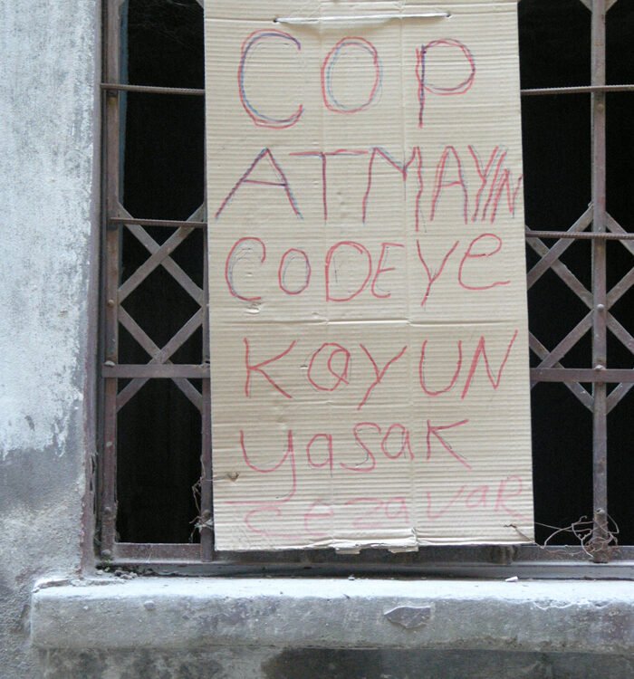 Hemen her mahallede, özellikle de eski mahallelerde, çeşitli biçimlerde ifade edilmiş “buraya çöp atmayın” ibaresi bulunur. İlk yazıldıklarında nazik ya da sıradan bir ifade biçimi kullanılır; […]