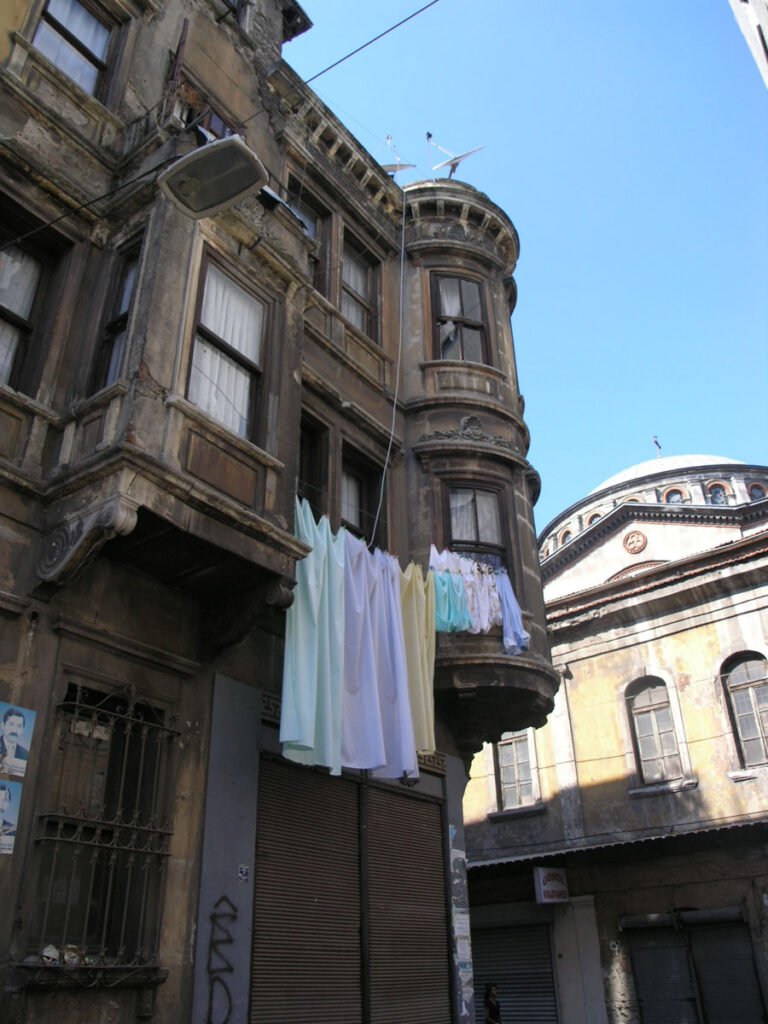9 Kasım 2008Alçak uzun bina seviyorum, bu şehirde az olduğundan olsa gerek, gördüğümde durup bakıyorum, baktığımda binanın arkasında bir kilise ve üstelik bir de kubbeli kilise görünce şaşakalıyorum. Uzun bina görmek zor, olsa olsa dini bir binanın dükkanları olur, nitekim bu da öyle; rum ortodoks kilisesi ayia kiryaki kilisesinin, kadırga limanı caddesinde bir güzel yayılmış dükkanları. Binayı görünce gözüm kilise aradı, kafamı kaldırdım, oradaydı çan kulesi, ama hani o ancak tanzimattan sonra izin verilen kubbelerden birini görebilmek için arka sokağa geçmem gerekti. 100 yıl önce yapılmasına izin verilen o kubbenin fotoğrafını çekmemden haz etmedi mahalle delikanlıları, oturup anlatamadım tabii kendilerine o kubbenin altında ne mühim tablolar olduğunu ve o kubbe orada olmasa alt katında o kadar ucuza döner yiyemeyeceklerini.